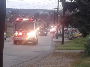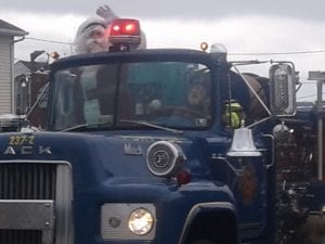 “Santa comes by fire truck to visit children and families in Port Vue Borough”
